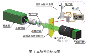 實(shí)驗(yàn)系統(tǒng)總體結(jié)構(gòu)如圖 1 所示,主要由數(shù)字全息光路系統(tǒng)和潤(rùn)滑油循環(huán)系統(tǒng)兩部分組成。