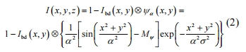 采用小波重建方法對(duì)去噪后的全息圖進(jìn)行重建。在基于線性不變系統(tǒng)的小波重建算法中,重建圖像的光強(qiáng) I(x ,y,z) 可表示為: