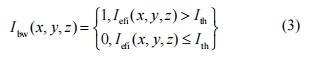 式中:下標(biāo) th 表示設(shè)定的閾值,efi 表示景深拓展圖,bw 表示二值化結(jié)果。
