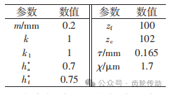 表2為本文齒廓設計的參數,下面將對本文提到的兩種平面設計的齒廓進行嚙合性能分析,主要從傳動側隙、共軛區域及瞬時傳動比展開分析。