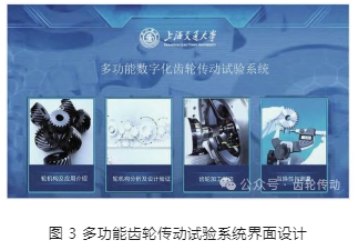 以齒輪傳動(dòng)設(shè)計(jì)為主線,輔以齒輪應(yīng)用、加工制造、互換性與測(cè)量技術(shù)等功能單元,將齒輪傳動(dòng)試驗(yàn)系統(tǒng)中涉及的功能模塊進(jìn)行邏輯串聯(lián),使整個(gè)系統(tǒng)在內(nèi)容設(shè)計(jì)上具有一定的廣度和深度,達(dá)到高階性、創(chuàng)新性與挑戰(zhàn)度的系統(tǒng)開發(fā)目標(biāo)要求。多功能齒輪傳動(dòng)試驗(yàn)系統(tǒng)界面如圖 3 所示。