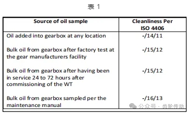 為得到齒輪和軸承的最佳使用壽命,AGMA/AWEA 6006:2003 標準中給出了維護潤滑油清潔度的指導(dǎo)(表 1):
