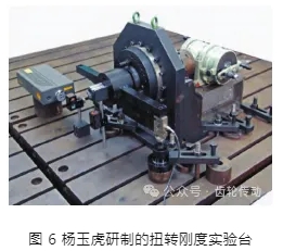 關(guān)于 RV 減速器扭轉(zhuǎn)剛度的計(jì)算方法和影響因素,也開展了大量研究。有的學(xué)者通過對 RV 減速器整機(jī)進(jìn)行動(dòng)力學(xué)建模研究減速器扭轉(zhuǎn)剛度,張大衛(wèi)等建立了 RV 減速器五自由度動(dòng)力學(xué)模型,提出計(jì)算擺線輪嚙合剛度的方法,分析了減速器扭轉(zhuǎn)剛度的影響因素,研究發(fā)現(xiàn)針輪齒數(shù)、針輪半徑和針齒半徑會(huì)影響減速器的扭轉(zhuǎn)剛度。在此基礎(chǔ)之上,鄭鈺馨等建立簡化的五自由度純扭轉(zhuǎn)非線性動(dòng)力學(xué)模型,分析了 RV 減速器中非線性因素對系統(tǒng)動(dòng)態(tài)特性的影響,得到了多工況各系統(tǒng)部件的動(dòng)態(tài)響應(yīng)曲線,并計(jì)算了固有頻率對各處扭轉(zhuǎn)剛度的靈敏度。這些學(xué)者通過剛體動(dòng)力分析模型計(jì)算分析了減速器的扭轉(zhuǎn)剛度及其影響因素。隨著齒輪動(dòng)力學(xué)研究的深入,更多物理樣機(jī)的特性融入到模型中,學(xué)者們結(jié)合計(jì)算機(jī)有限元仿真工具研究 RV 減速器扭轉(zhuǎn)剛度。楊玉虎等使用有限元分析工具,充分考慮了各零部件的結(jié)構(gòu)剛度,結(jié)合圖 6 實(shí)驗(yàn)設(shè)備測量分析得出減速器內(nèi)軸承的支撐剛度是影響整機(jī)扭轉(zhuǎn)剛度的主要因素。王輝、吳素珍等也結(jié)合有限元分析方法分析了擺線齒輪多齒嚙合的動(dòng)態(tài)過程、齒面接觸應(yīng)力的分布規(guī)律以及減速器曲拐軸承各滾針的應(yīng)力狀態(tài)。