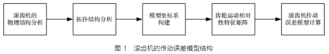 滾齒機的傳動誤差模型作為本次研究的重要組成之一,對于小模數齒輪的實際加工環境具有較高的精度要求,同時環境對其存在一定的影響。在構建滾齒機的傳動誤差模型時,將其分為 5 個部分,如圖 1 所示。