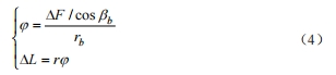 式中:φ 為轉角誤差;?F 為齒合線的增量;βb 為齒輪基圓螺旋角 ;rb 為分度圓半徑 ;?L 為分度圓弧長誤差 ;r 為半徑。