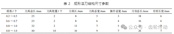 常規情況下,成形滾削加工的結構尺寸控制在 0.2 ~ 1.0 mm,且該范圍內不同尺寸范圍又存在一定的區別,如表 2 所示。