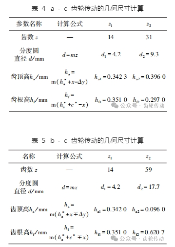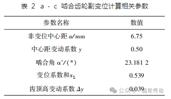 a-c 嚙合齒輪副變位計算相關(guān)參數(shù)如表 2 所示。