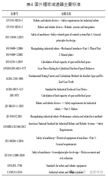 表 4 所示為國外機器人用減速器領域相關標準,分析可知,國外精密減速器大部分為通用型標準,只有少部分標準名稱是專門針對機器人用減速器,這與減速器最初的應用領域和場景有密切關系。