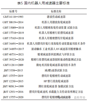 由表 5 可知,目前國內制定了許多專門針對機器人用的減速器國家標準,覆蓋諧波、RV、行星、擺線針輪等減速器,標準類別包含技術指標、產品標準、試驗方法標準,近些年國內機器人用減速器領域快速發展,離不開標準體系建設提供重要保障。