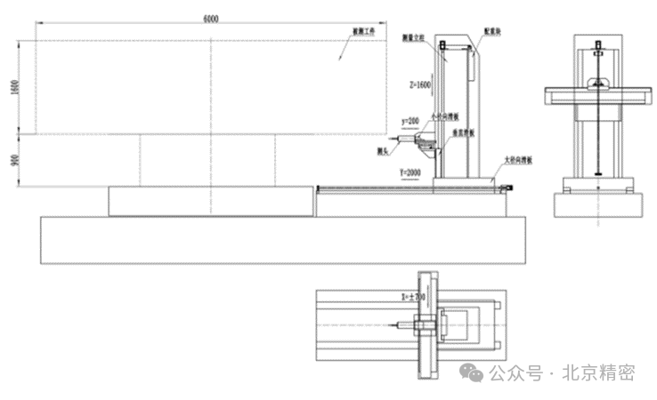 測量單元采取機床旁置式安裝,由X、Y、Z相互正交的坐標軸、測頭系統(tǒng)、控制系統(tǒng)等組成,重點實現(xiàn)了機床數(shù)控系統(tǒng)與測量單元數(shù)控系統(tǒng)完美結合,相互通訊握手,完成測量任務軌跡控制,由測量單元進行數(shù)據(jù)采集及齒輪誤差評值處理。