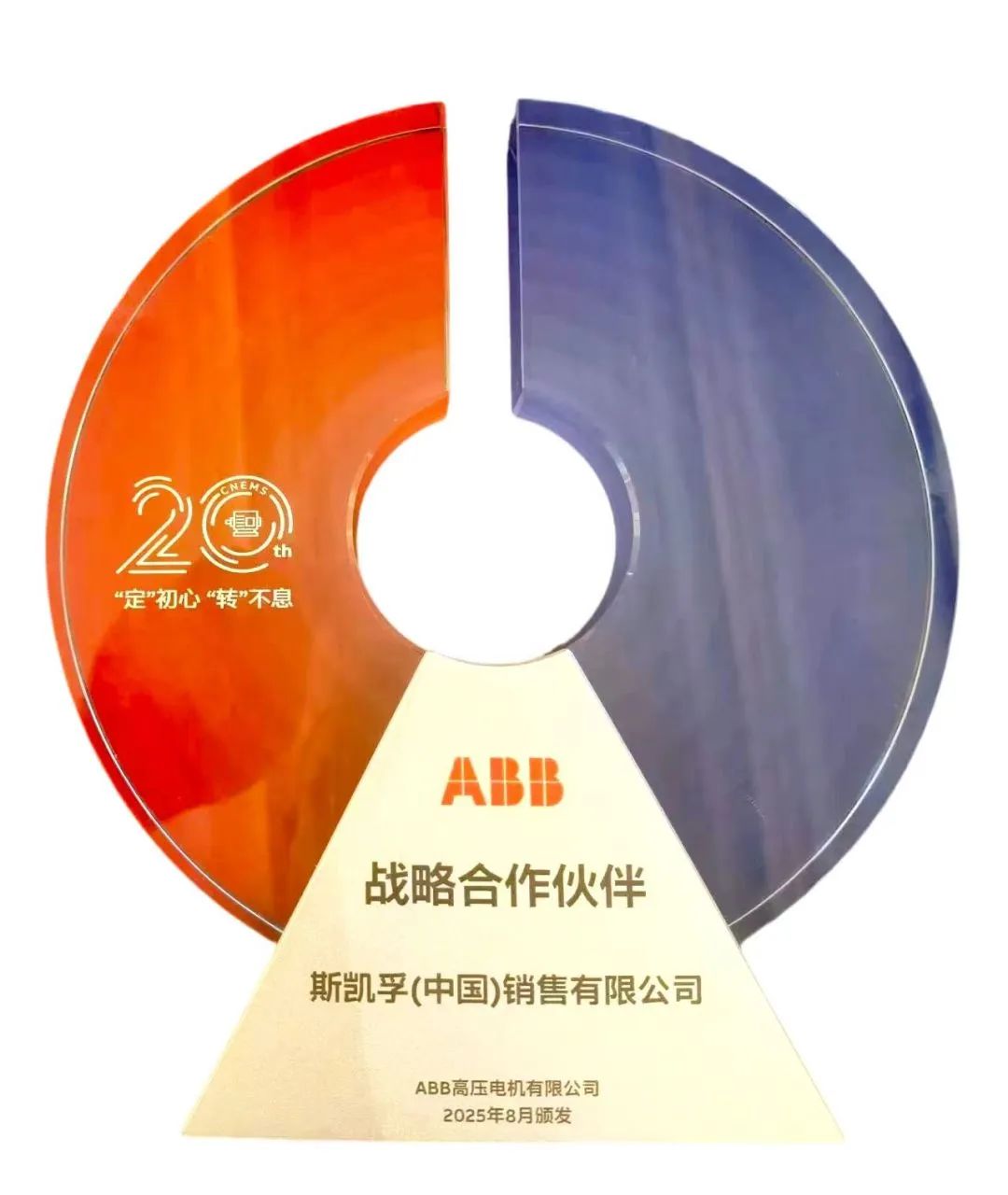 2025年8月22日,ABB高壓電機有限公司舉辦20周年慶典暨2025年度供應商大會,斯凱孚(SKF)被授予 “戰略合作伙伴”獎項。這一殊榮充分肯定了斯凱孚在過去20年與客戶在堅實互信中共創的卓越產品與解決方案,同時彰顯了斯凱孚在其供應鏈協同與價值創造中做出了不可或缺的貢獻。